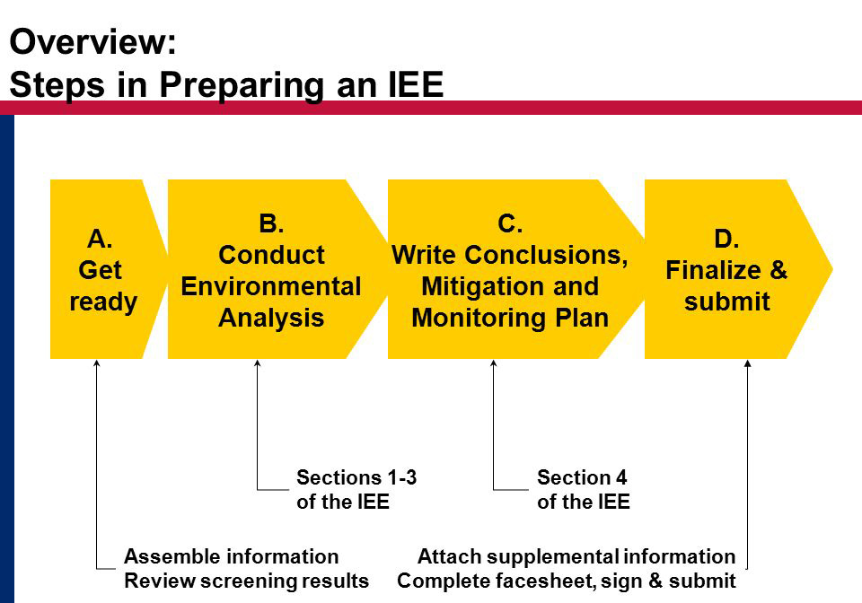 Here are the main steps involved in an Initial Environmental Examination (IEE):